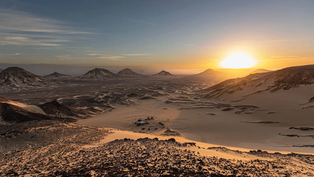 Ein Sonnenaufgang in der ägyptischen Wüste ist ein Moment der inneren Ruhe. Viele Ausflüge beginnen sehr früh – oft gegen 4:00 Uhr morgens –, um rechtzeitig auf einem Aussichtspunkt oder einer Düne zu sein. Dort erwartet dich ein Panorama, das selbst erfahrene Reisende sprachlos macht.