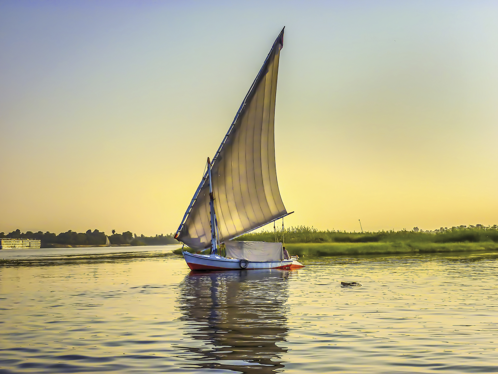 Eine Feluke ist ein traditionelles Segelboot, das seit Jahrhunderten auf dem Nil genutzt wird. Sie ist kleiner und ruhiger als ein Kreuzfahrtschiff und wird allein durch Windkraft bewegt.